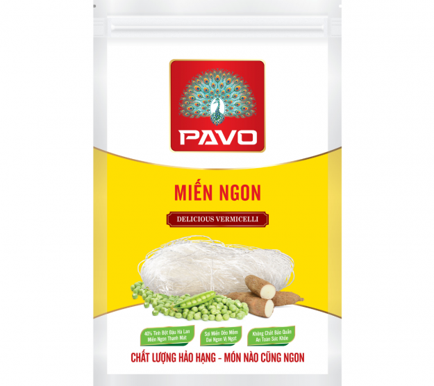 Miến ngon Pavo là dòng sản phẩm được sản xuất từ 100% nguyên liệu tự nhiên nhằm mang đến trải nghiệm ẩm thực trọn vẹn cho mọi gia đình Việt. Với công thức phối trộn khoa học từ 40% tinh bột đậu Hà Lan và 60% tinh bột khoai mì, sản phẩm tạo nên sợi miến đạt độ hoàn hảo cả về hình thức lẫn hương vị.