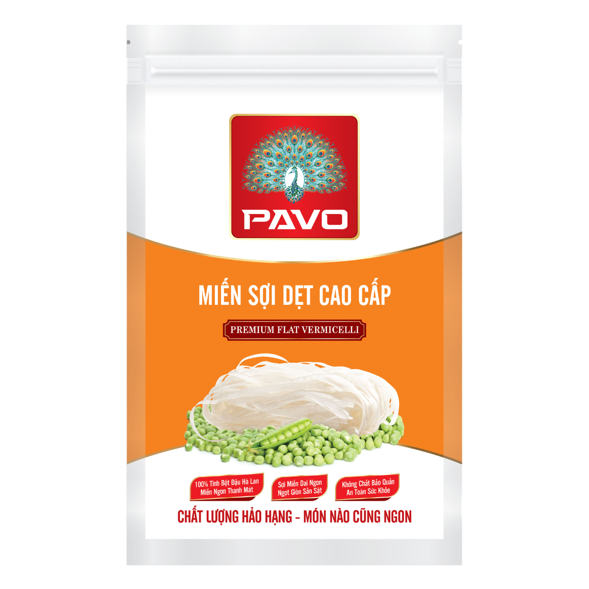 Miến sợi dẹt cao cấp Pavo là lựa chọn hoàn hảo dành cho những tín đồ yêu thích các món lẩu và món nước đậm đà. Được sản xuất từ 100% tinh bột đậu Hà Lan, sản phẩm mang đến sợi miến chất lượng vượt trội với độ dai giòn tự nhiên, giữ trọn kết cấu ngay cả khi nấu trong thời gian dài.